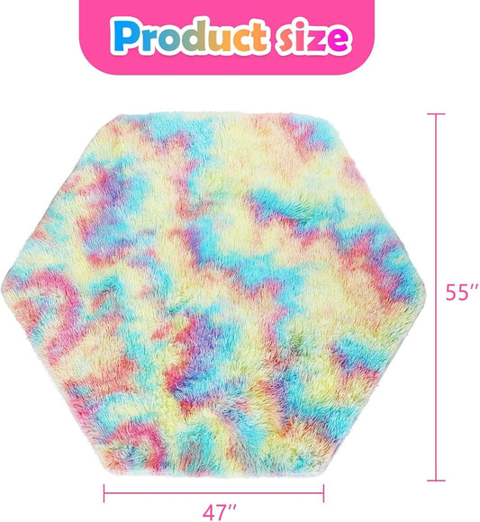 Monobeach Pink Kids Rug for Nursery Children Room Decor Ultra Soft Hexagon Carpet (Rainbow Hexagon, 55”x 47”)