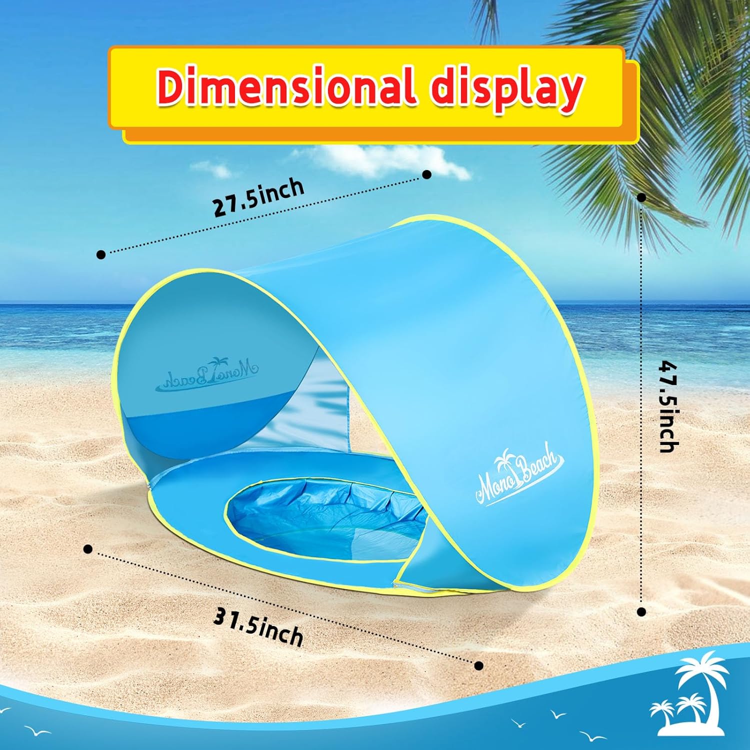 Monobeach Baby Beach Tent with Sun Hat Pop Up Portable Shade Pool UPF50+ UV Protection Sun Shelter for Infant with Easy Set Up Canopy (Blue)