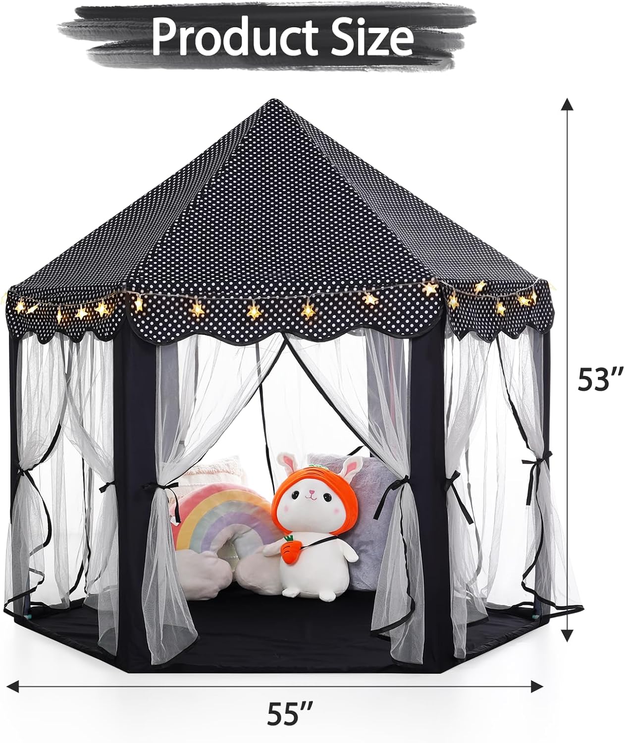 Monobeach Princess Tent Girls Black Large Playhouse Kids Castle Play Tent with Star Lights Gift Toy for Children Indoor and Outdoor Games