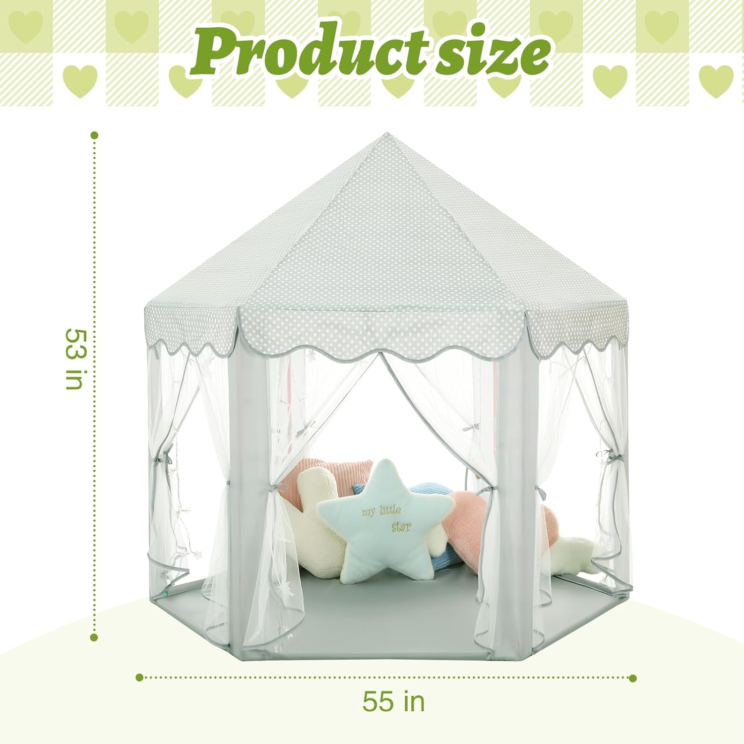 Save 31% Monobeach White Princess Tent & Celadon Princess Tent Girls Large Playhouse Kids Castle Play Tent with Star Lights